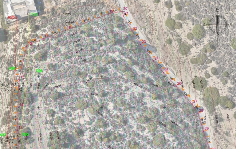 Με τη χρήση drone έχουμε αποτυπώσει σε γεωαναφερμένες ορθοεικόνες γεωργικές εκτάσεις με σκοπό τη σύνταξη τοπογραφικών διαγραμμάτων ή ακόμα και δασικές εκτάσεις για χρήση απο δασολόγους για σύνταξη πρόταση αντιρρήσεων για τους δασικούς χάρτες. Επίσης παρέχουμε ψηφιακά μοντέλα εδάφους, ισουψείς καμπύλες και τομές σε εκτάσεις που προορίζονται για την εγκατάσταση φωτοβολταικών πάρκων.